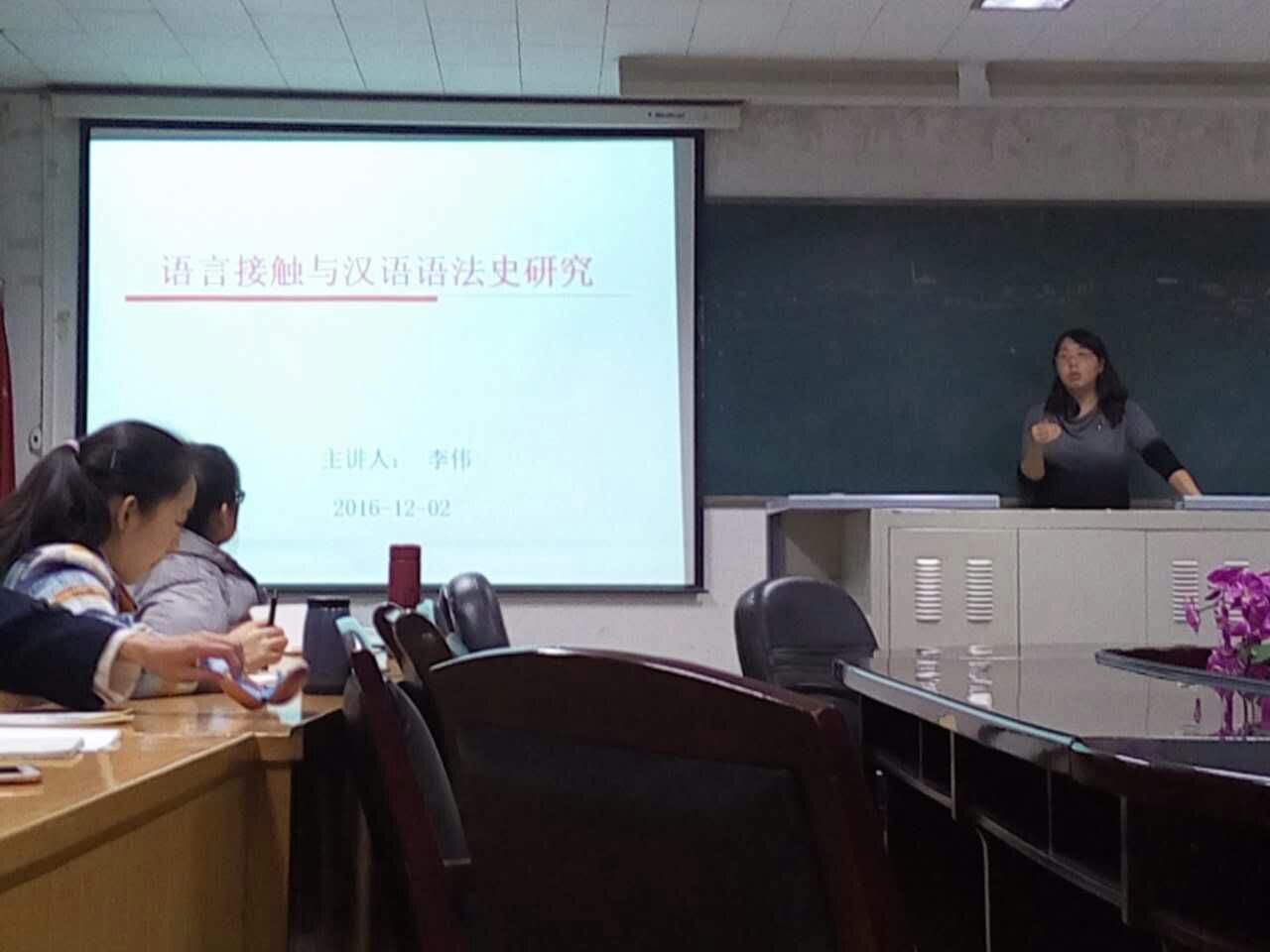 12月2日19:00,beat365vip官网登录入口硕士生导师李伟副教授在12号楼五层会议室作了题为“语言接触与汉语语法史研究”的学术报告。