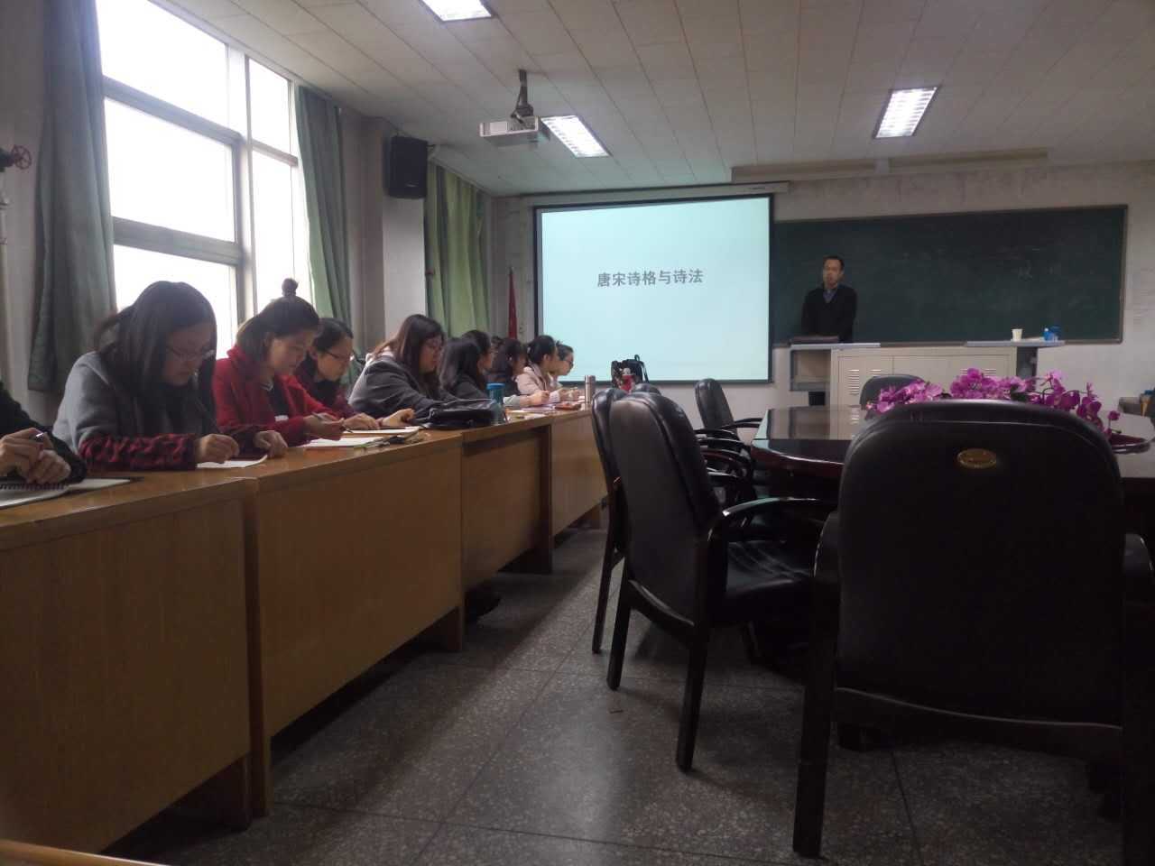 下午4:00点,beat365vip官网登录入口副教授、硕士生导师郭庆财老师在12号楼5层会议室作了题为“唐宋诗格与诗法”的学术报告。中国古代文学专业的研究生到场听取了此次报告。