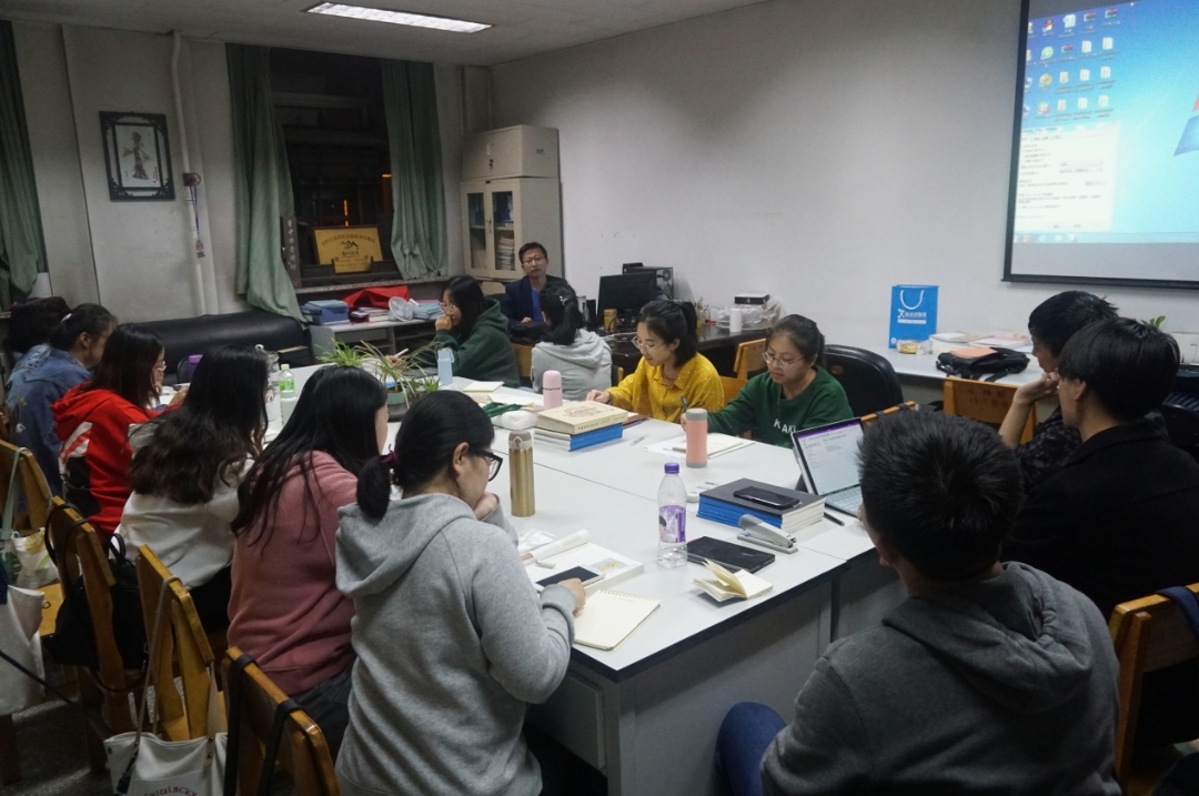 2019年10月11日,beat365vip官网登录入口民俗学硕士生导师高忠严博士在12号楼6层民俗学教研室作了题为“山西古建筑吉祥图案研究”的学术讲座,民俗学专业的硕士研究生听取报告并进行了交流。