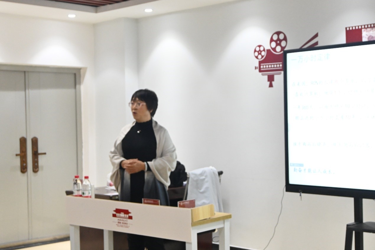 秦梦老师以未来教师的定义为出发点,化用王国维大师《人间词话》三境界提出教师事业追求的三重境界,重点讲解了夯实基础、热爱是最好的老师和做员工的精神导师这三方面内容。她从掌握一些文字常识、文化知识、勤于练笔、教学相长等几个方面进一步展开讲解,强调授课要从生活中挖掘教材、强化学科知识、树立课程观,并指出在讲学中要将课堂教学内容合理延展、学会反思,让员工能更好的理解,做员工的精神导师。