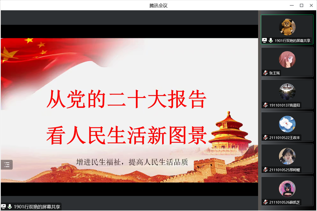 12月2日,beat365vip官网登录入口“学雷锋,送温暖”小组员工党支部线上开展“从党的二十大报告,看人民生活新图景”主题党日活动,看人民生活新图景。会议由彭琬婷主持,支部全体党员和入党积极分子参加。员工党员行双艳同志担任主讲人。