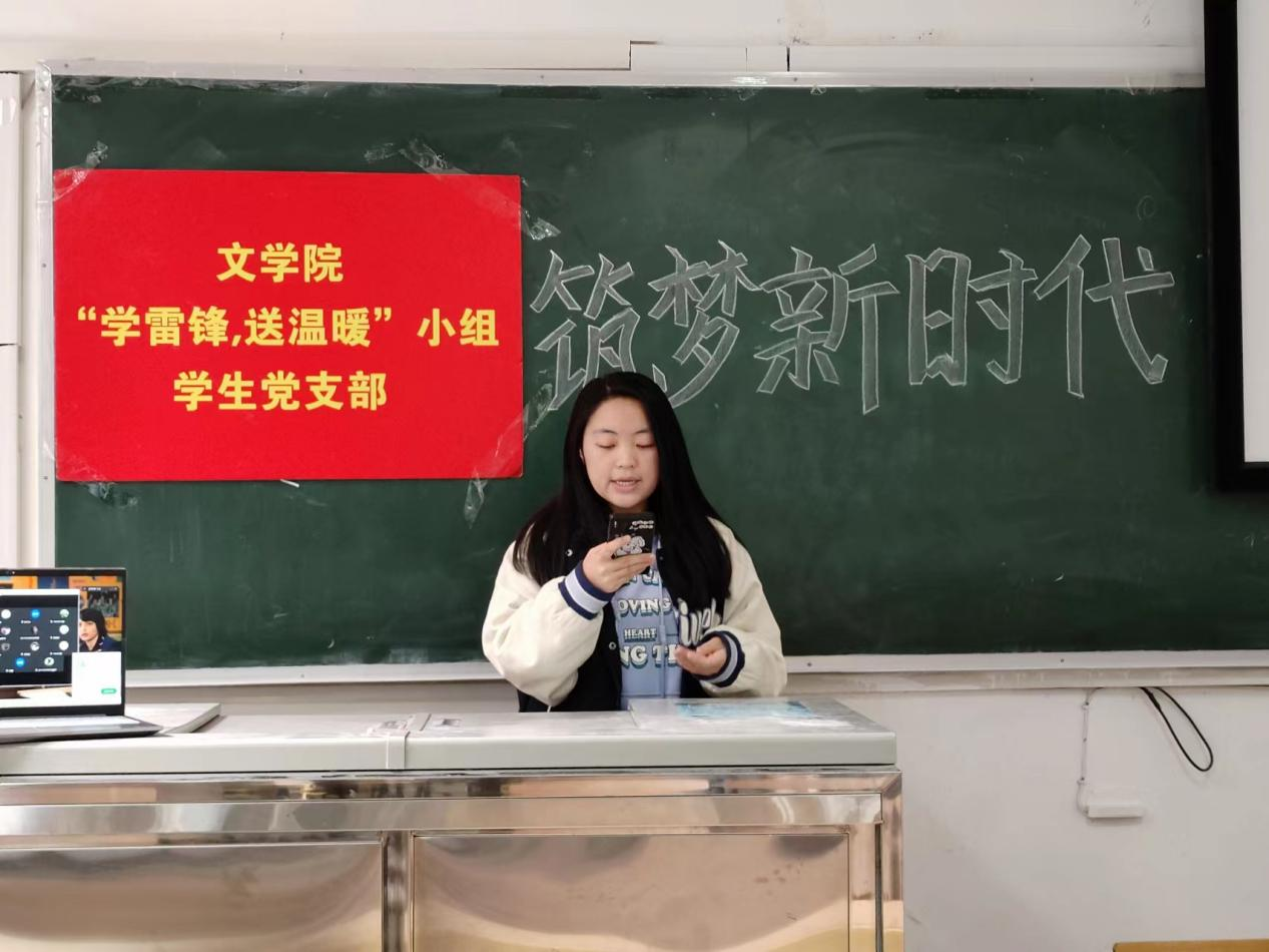 4月14日,beat365vip官网登录入口“学雷锋,送温暖”小组员工党支部在南区3101教室组织开展“敢担当,有作为,筑梦新时代”主题党日活动。会议由支部书记安李蓉主持,支部全体党员参加。员工党员王梓怡同志担任主讲人。