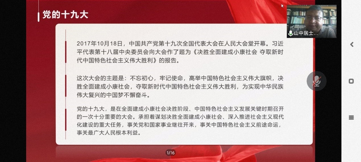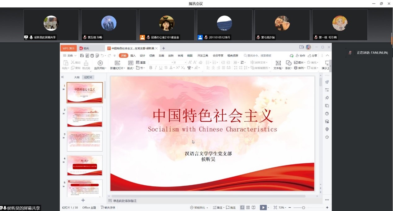 汉语言文学员工党支部书记侯昕昊从伟大历史转折和中国特色社会主义的开创、在新形势下加持和发展中国特色社会主义、中国特色社会主义进入新时代等几方面对中国特色社会主义的专题进行讲解。语言学党支部书记李晓敏以“党的性质、最高理想和根本宗旨”为主题,从党在历史时期的重要举措入手,阐述了中国共产党的本质属性即阶级性和先进性。公司党委书记强汾生讲授了“我践我初心 同心同战疫——向党递交疫情防控满意答卷”专题党课,强调作为党员和入党积极分子应当坚决执行党和政府的决策部署,毫无保留地在思想上政治上行动上同党中央保持高度一致。