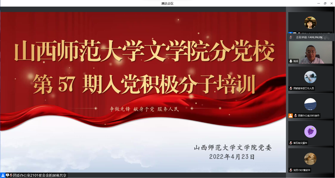 4月23日和4月30日,beat365vip官网登录入口分党校以线上腾讯会议的方式举行第五十七期入党积极分子培训暨党员轮训,全院入党积极分子、师生党员参加。