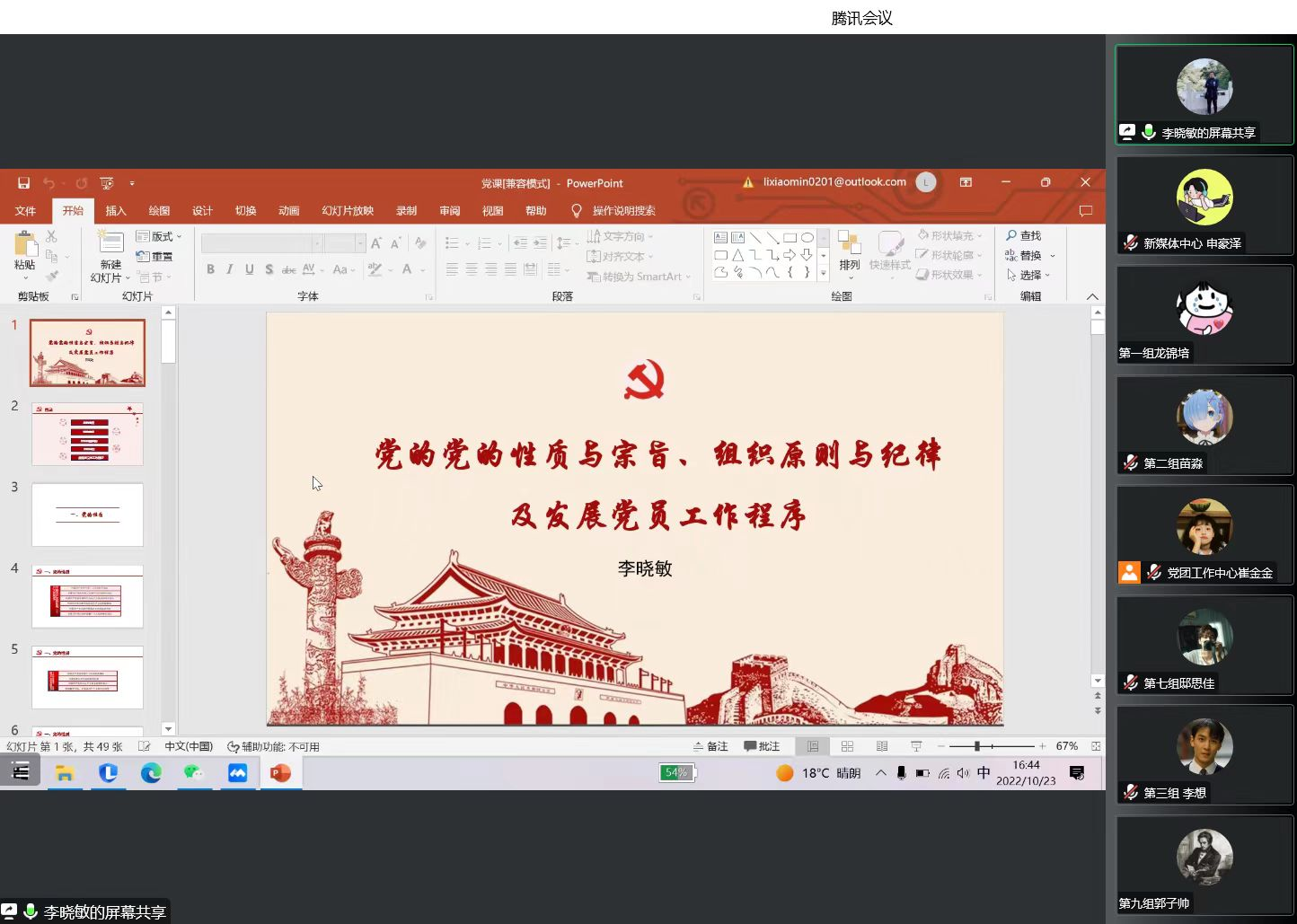 10月22日和10月23日,beat365vip官网登录入口分党校于线上召开第五十八期入党积极分子培训会议,第58期积极分子及师生党员参加。