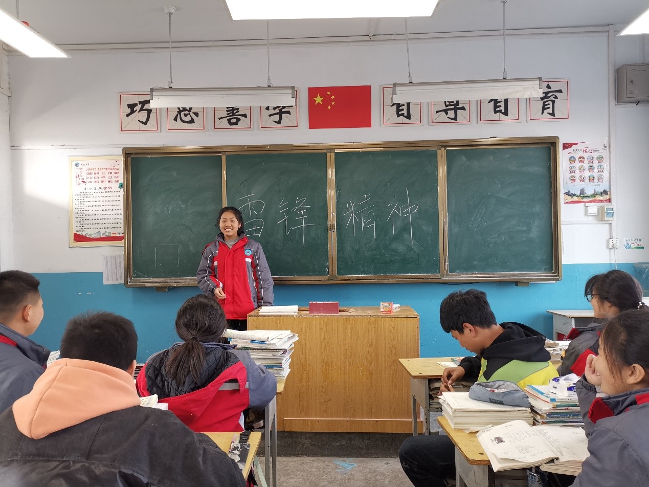 活动过程中,团队成员们向同学们介绍了学习雷锋日的得名和由来、雷锋精神的内涵以及为什么要向雷锋同志学习,并引导同学们讲述自己对于雷锋精神的理解,分享日常生活中的好人好事。同学们积极发言,用平实可亲的话讲述着“与同学一起捡到钥匙并物归原主”、“扶老奶奶过马路”的故事……他们的温暖与正气让团队成员们深受感动。分享结束后,成员们再一次号召同学们在日常生活中要多行好事,多做善事,坚持不懈地弘扬与践行雷锋精神。