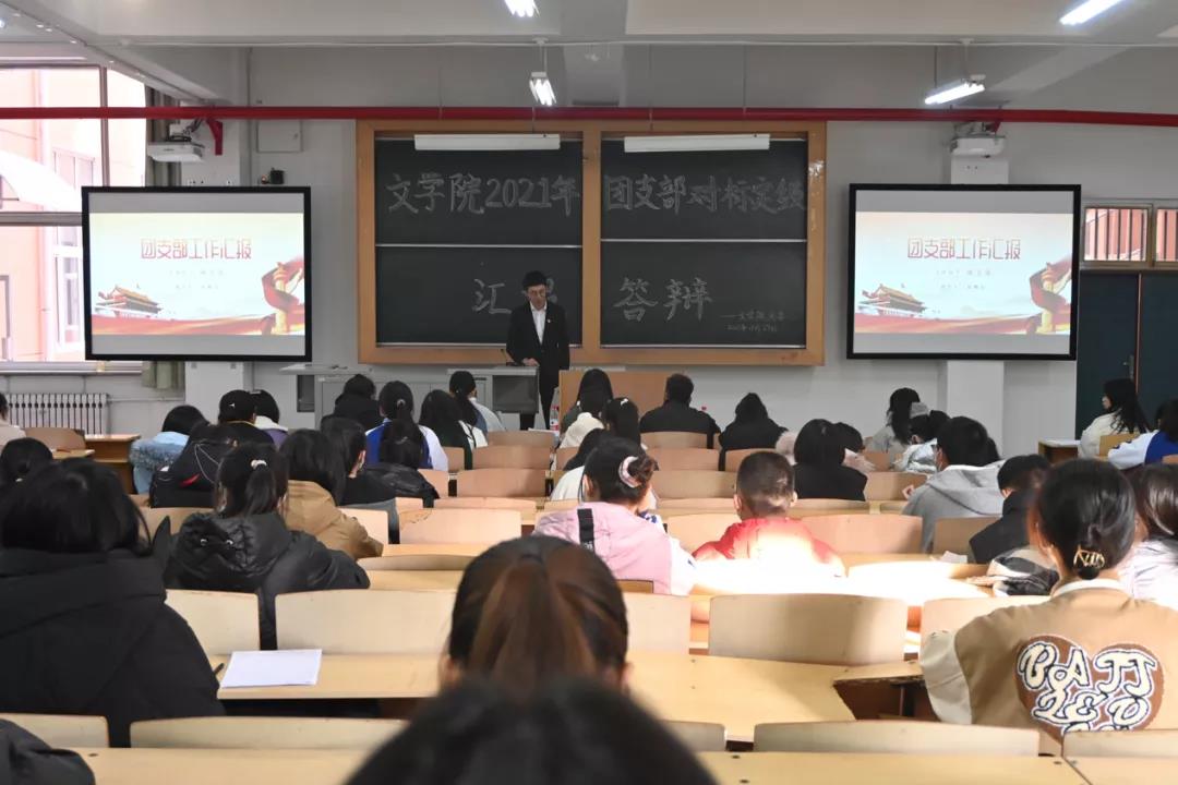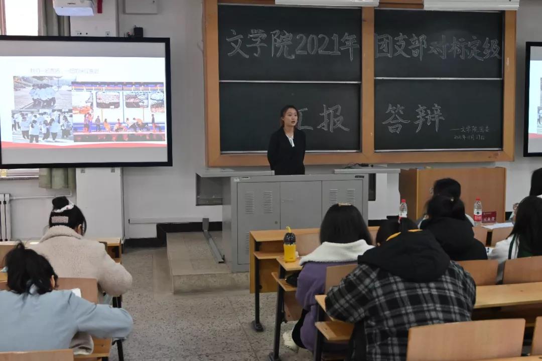 11月27日上午,beat365vip官网登录入口团委于3107教室举办2021年团支部“对标定级”汇报答辩会。beat365vip官网登录入口专职组织员王永青、beat365vip官网登录入口员工会执行主席张文超、员工团委副书记董彤彤担任评委,22个本科及研究生各团支部书记参与答辩,73名青马学员到场聆听。