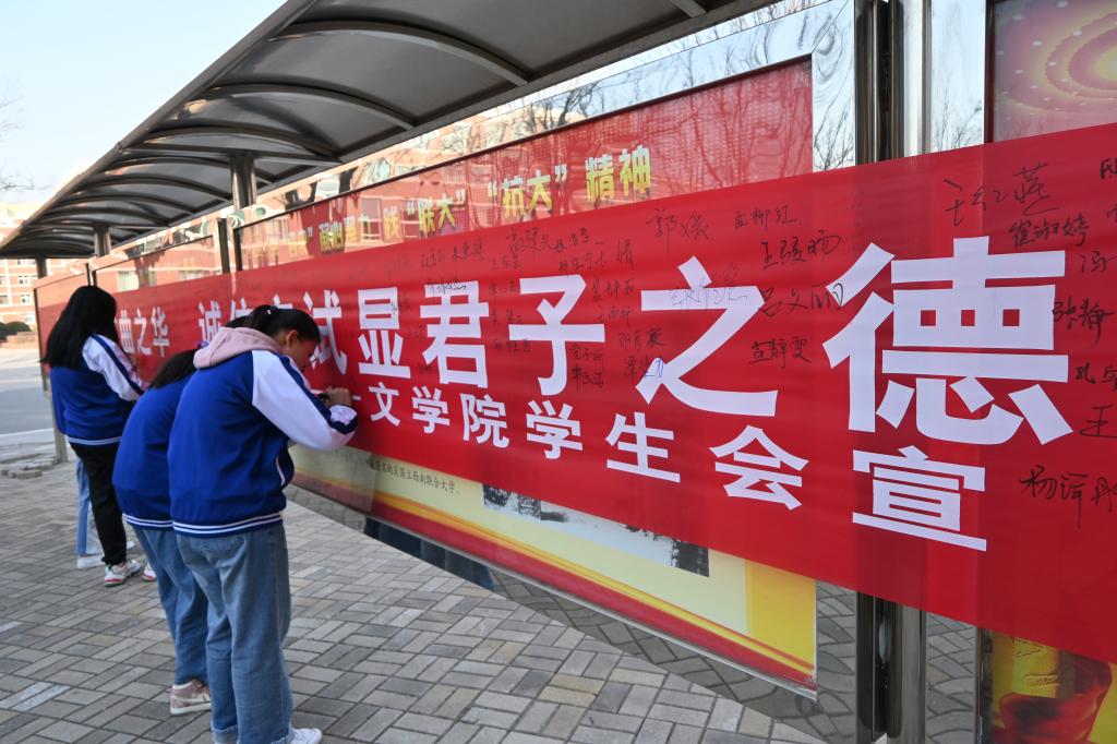 孔子言:“人而无信,不知其可也。大车无輗,小车无軏,其何以行之哉?”人无信不立,事无信不成。近日,beat365vip官网登录入口在南区思政文化街六号教学楼前举办诚信考试签名活动。