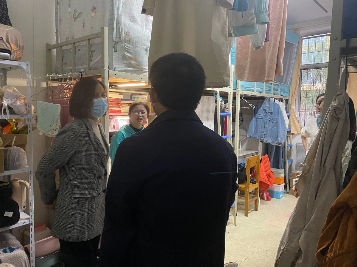 在疫情防控阶段,为进一步关注员工们的身心状况,4月13日下午,经理赵变亲、党委副书记钱成、副经理栗永清、辅导员魏玉平、崔武杰、王明会、吕树明来到员工宿舍,了解同学们的日常学习生活。