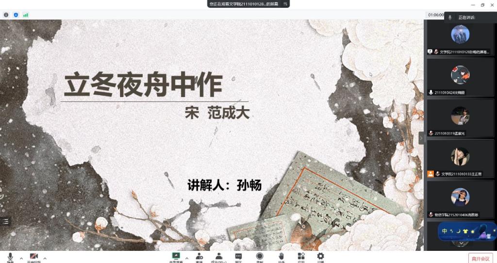 11月6日晚,beat365vip官网登录入口神舟诗社携手员工会新媒体中心线上举办了“冬藏万物,万物终成”隽·咏诗歌交流会。本次活动共吸引300多名同学参加,同学们以诗会友,以歌叙情,在诗歌的交流中学习贯彻党的二十大精神。