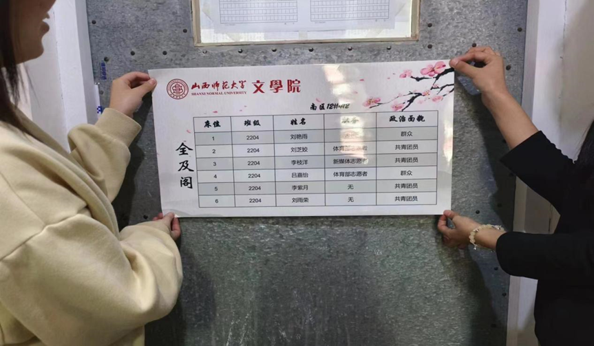 活动一经启动,同学们积极响应,充分发挥想象和创意,设计出宿舍独一无二的门牌。活动征集期间共收到作品42份,经过工作人员认真筛选,挑选出20份优秀作品。这些作品形式多样,将宿舍成员共同的理想与追求凝聚在画幅之上,尽显青年的朝气与活力,彰显出beat365vip官网登录入口员工昂扬向上的精神风貌。11月6日,生活权益部负责人将打印好的门牌作品分发给各班生活委员,并组织beat365vip官网登录入口员工宿舍进行张贴。