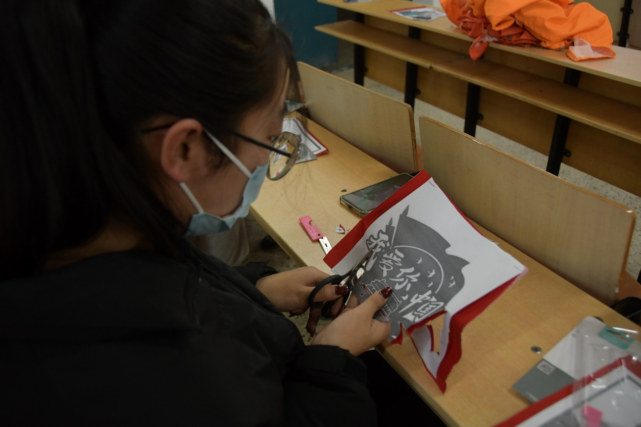 活动伊始,工作人员为同学们发放编织材料并介绍了本次编织活动的规则流程及注意事项。“编织艺术文化历史悠久,不同的绳编、穿珠组合,寄予了美好的祝福和心愿”,志愿者“小老师”们为同学们讲解编织文化和编制方法,在他们的指导下,同学们了解了编织的步骤并开始尝试动手创作,一条条手链、一个个中国结、一枚枚发卡以及风格多样的剪纸被心灵手巧的同学们制作出来。编织文化活动结束之际,大家将作品在QQ群内进行展示分享,并一起合影留念。