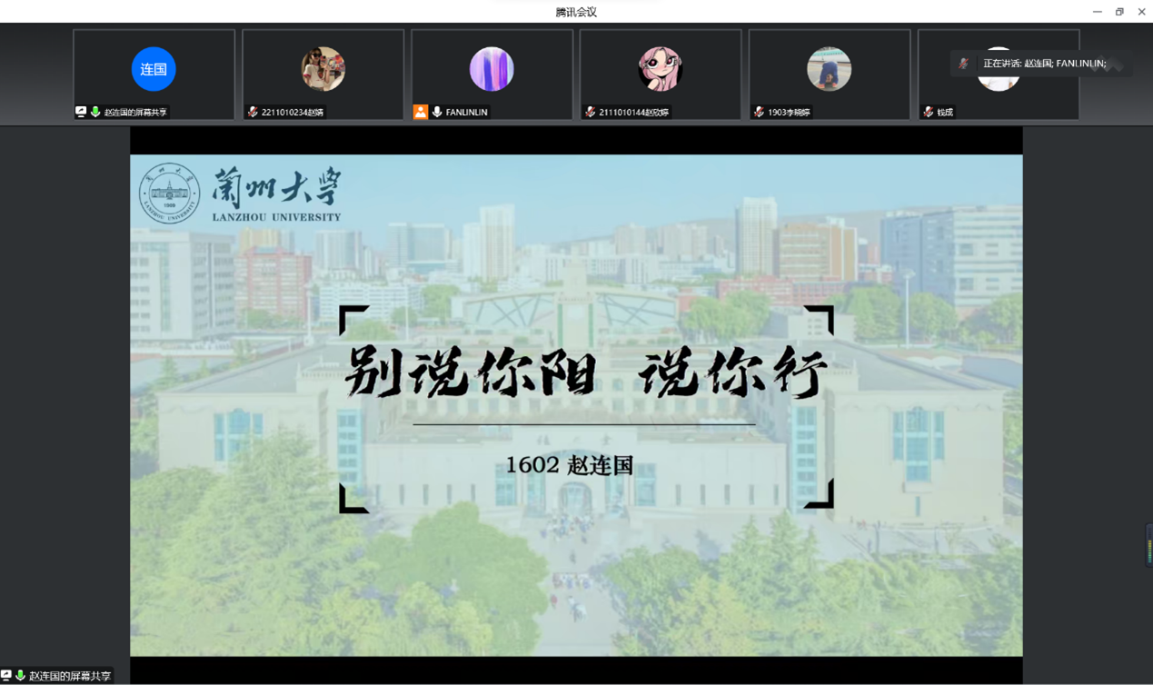 12月21日下午,beat365vip官网登录入口于线上举行beat365vip官网登录入口考研冲刺动员会。本次会议由院团委书记樊琳琳主持,公司党委书记钱成、副经理段俊出席,19级考研同学参加。会议由1903班李晓婷,就读于兰州大学的2020届毕业生赵连国,就读于内蒙古师范大学的2021届毕业生高馨三位员工代表主讲。
