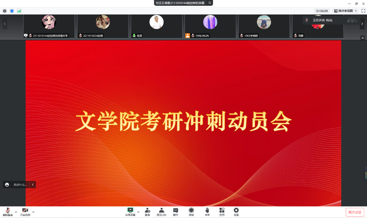 钱成在会议最后总结强调,当前公司考研员工的整体状态良好,希望大家相信学校良好的疫情防控制度,在面对疫情时保持积极的态度,在最后几天的时间中集中精力、全力冲刺。段俊也表达了对考研学子的期望,希望大家充分准备,做好防护,调整好心态,用积极健康的心态迎接考试。