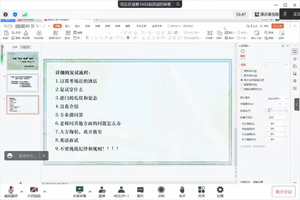 3月19日上午,beat365vip官网登录入口员工会学习部于线上开展考研复试经验分享会。此次会议诚邀beat365vip官网登录入口20届优秀毕业生赵连国学长担任主讲人,百余名员工参加。