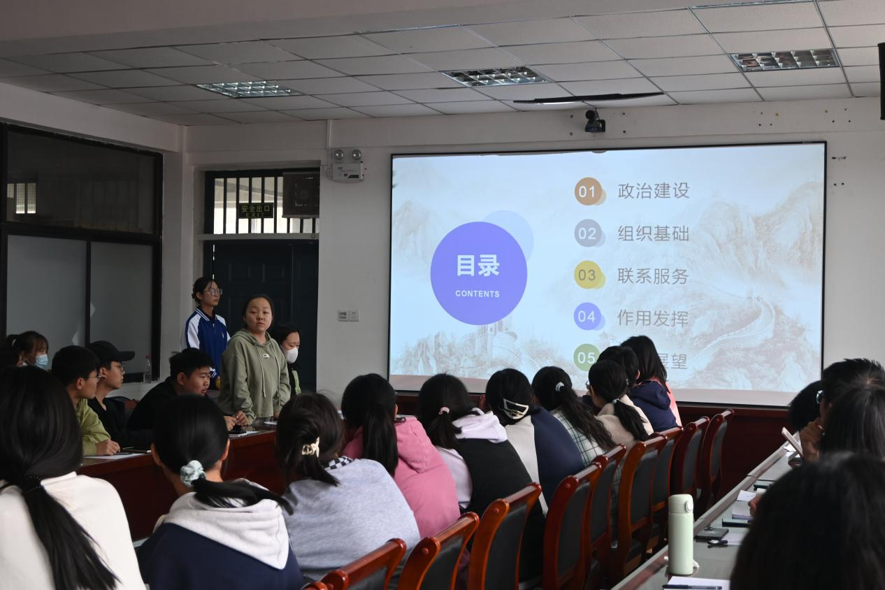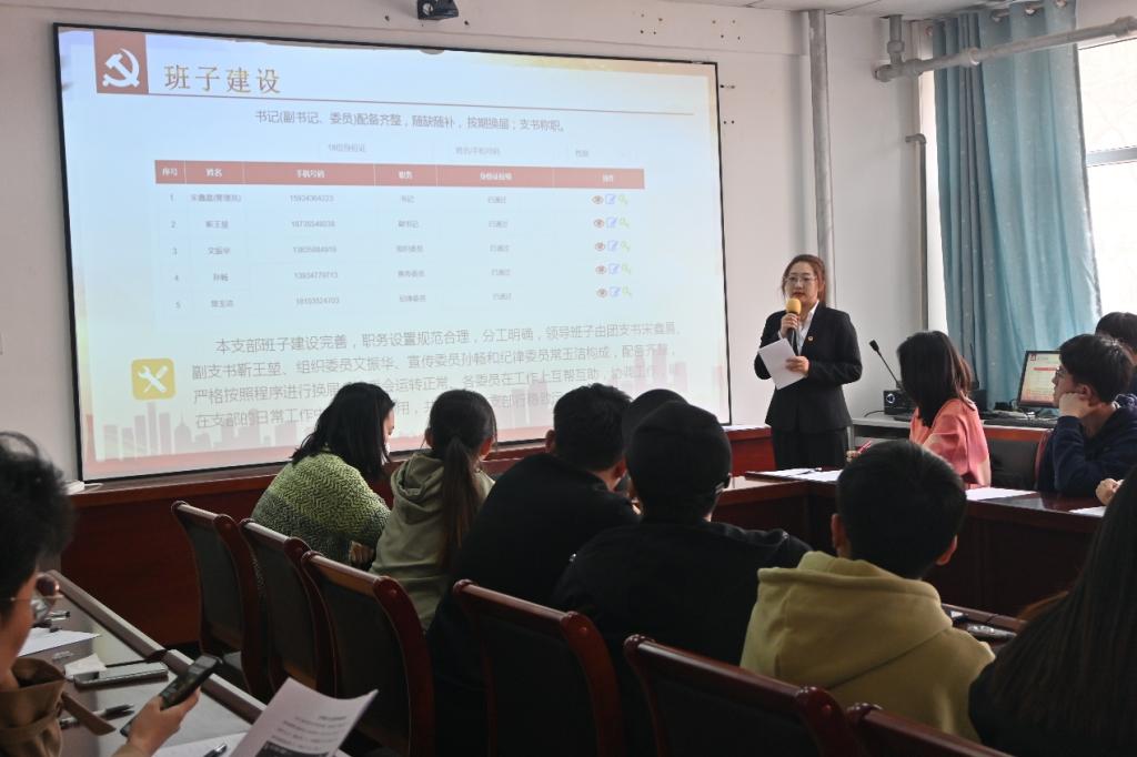 2022年红旗团支部获得者1901团支部代表刘晓琴进行了答辩经验分享。接着,各班团支书采用“PPT展示+现场汇报”的方式,立足支部实际,从政治建设、组织基础、联系服务和作用发挥四个方面,全面生动地展示了各团支部的工作成果和团员风采,对支部工作认识深刻清晰,肯定成绩,指出不足,并提出了有针对性的改进措施,对支部未来发展做出细致规划。
