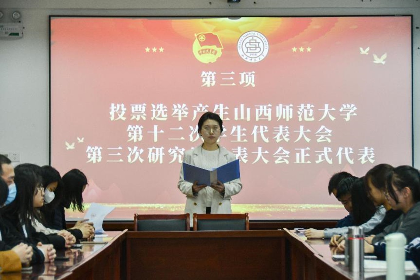 3月29日下午,beat365vip官网登录入口第十二次员工代表大会、第三次研究生代表大会于院会议室顺利召开。本次大会由毛临辉担任主持人,院团委书记樊琳琳出席,研究生、本科生员工代表候选人,监计票小组成员,以及投票人员参加。