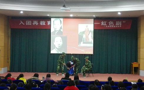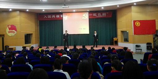 2014年11月19日晚7:30,beat365vip官网登录入口团委于科学会堂二层报告厅举办了“新生入团再教育之重温经典—红色剧”主题教育活动。出席本次活动的嘉宾有beat365vip官网登录入口副经理、员工工作领导组副组长栗永清,团委副书记师君,员工会主席冯劲桦,副主席颉金娟,以及团委员工会各部部长。