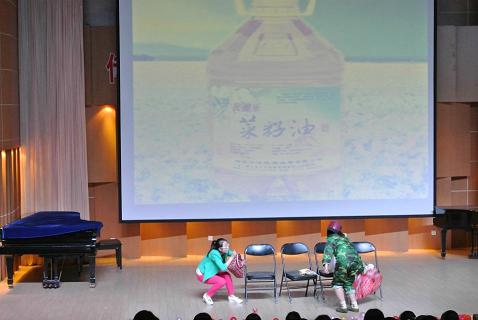 第二幕:《舞动青春的旋律》:老员工演讲俱乐部马茹等同学的倾情助演,把爵士舞《Shot gun》的热辣、性感、随性演绎得传神到位;薛元宇等四位同学用幽默的语言,夸张的语调,惟妙惟肖的表演,重新演绎了小品《今天的幸福》,引来观众的拍手叫好;随后的歌曲串烧更是高潮迭起,赵琼、彭文丽等同学惊艳亮相、一展歌喉,让这组歌曲串烧火候极佳。许彤、任佳丽表演的相声《学富五车》,风趣地在古典文学著作中穿梭、调侃,各种“包袱”引得大家捧腹大笑。二人说学俱佳,颇有专业韵味,带来的阵阵欢笑与掌声更是将晚会推向了高潮。文艺部张青等同学激情演绎的啦啦操《Mr. Mr》,旋律优美,编排流畅,舞姿活泼,热情霸气,青春外溢,为第二幕完美收官。