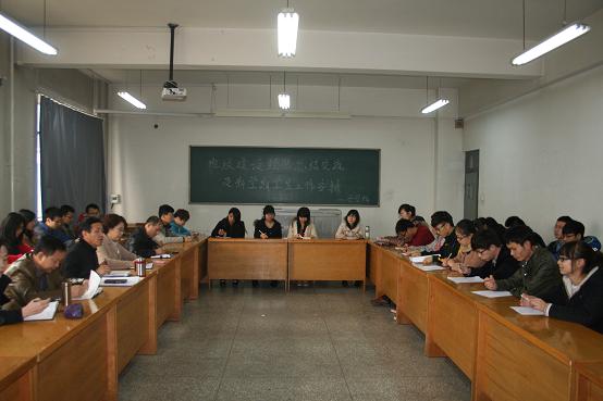 交流环节结束后,强汾生副书记详细传达了3月4日校学工组关于“老员工思想政治专题教育”会议的内容,要求公司积极贯彻落实校学工组的会议精神,继续一如既往地、坚持不懈地、创先争优地抓好公司员工工作。随后,强汾生老师就本学期公司的五大重点工作:“安全教育紧抓不放,践行社会主义核心价值观,传承中国梦、讲好中国故事,优良班风学风建设,承办好首届道德讲堂”,以及十项主要工作、一项专项工作进行了安排部署。会议接近尾声时,邀请员工处主任科员魏玉平老师简述了学院员工工作日常考核评定的有关事项,并激励学院师生要以更加饱满的热情投身于今后的员工工作之中。