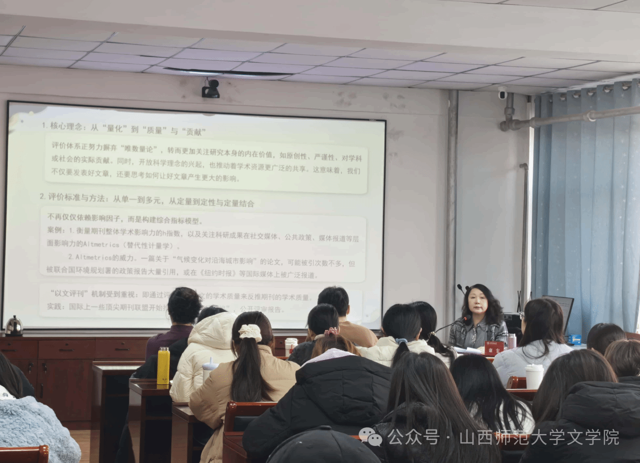 12月11日上午,beat365vip官网登录入口编辑出版学专业特邀山西省期刊协会会长、《编辑之友》杂志社原社长康宏编审举办主题为“学术期刊高质量发展的核心方略:从论文审校到品牌塑造”学术讲座。讲座由索煜祺老师主持,编辑出版专业部分本科生、研究生参加。
