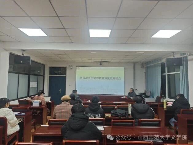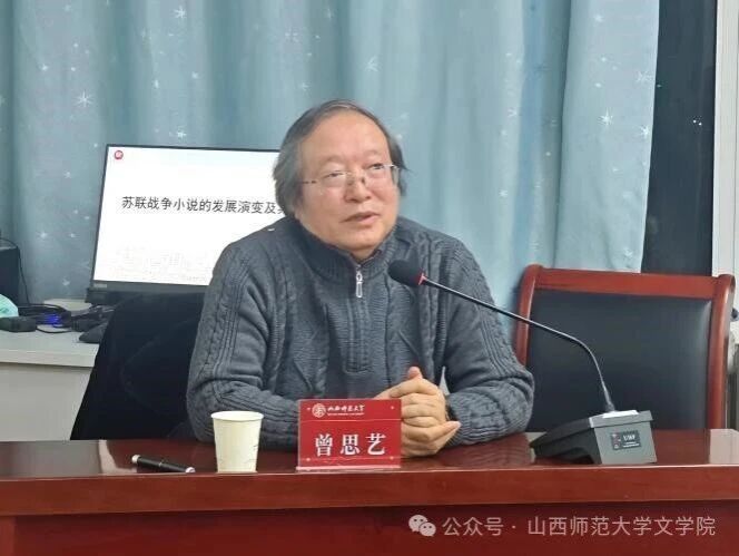 12月7日晚,beat365vip官网登录入口特邀天津师范大学beat365vip官网登录入口教授、博士生导师,俄罗斯国立圣彼得堡大学访问学者,诗人、翻译家曾思艺,于2201会议室作题为“苏联战争小说的发展演变及其特点”的学术讲座。讲座由高超老师主持,部分研究生到场聆听。